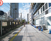 - 北口階段下から正面に向い、左手線路と平行にお進みください。